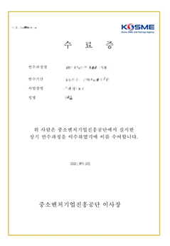 | 제출서류(예시)교육과정 수료증 | |